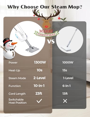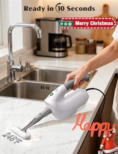 Specification: 10-in-1 Steam Mop with Detachable Handheld Steamer, Multi & Up Steam Mops for Floor Cleaning with 350ml Tank, 10s Heat-Up, 2-Level Control, Floor Steamer for Home, Floors, Grout, Carpet (Pure White)