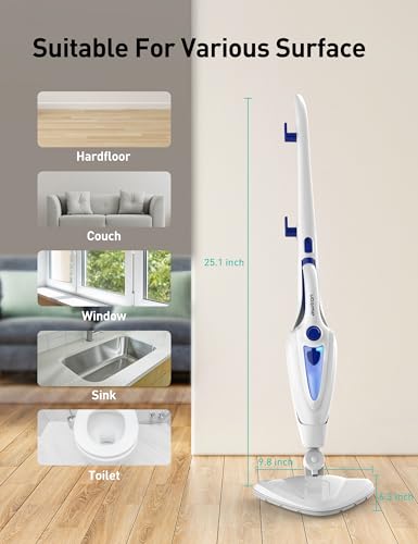 Specification: 12-in-1 Steam Mop, Fast 15-Sec Heat-Up, 1500W Detachable Handheld Steam Cleaner with 2 Dirt Grip Pads, Removes 99.99% Stubborn Stains for Hardwood Floors, Clothes, Windows, Tiles, Furniture, White