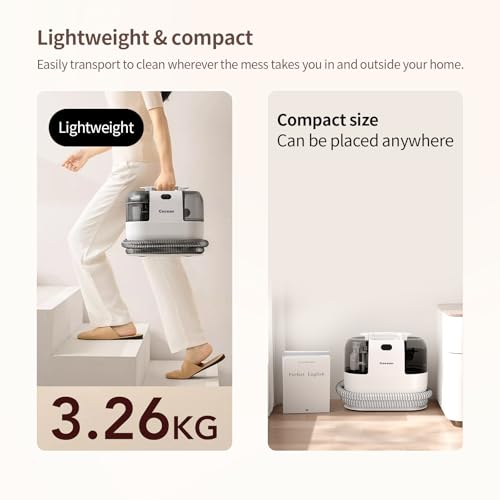 【NEW UPGRADE POWERFUL SUCTION】:The COCEAN Portable Carpet & Upholstery Spot Cleaner is equipped with a 500W motor, which can provide a super suction force of 15Kpa,and you can easily and quickly clean stubborn stains such as dirt, wine, pet feces, etc. on carpets and indoor decorations through spraying, brushing, and suction steps, ensuring that carpets dry quickly after cleaning and quickly return to normal, making your home environment healthier and safer.