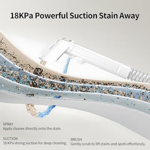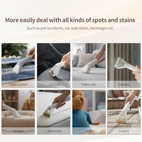 【WIDE APPLICATION RANGE】: The carpet cleaner machine is for fabric cleaning, and cleans most fabric products that cannot be cleaned as a whole, such as sofa, mattresses,car seat,and other difficult to clean items,and is equipped with two sizes of brush heads, which can be used for different areas of stains and can perfectly handle leaks and accidents for you.For more product details, please read the product manual carefully.we will be responsible for any product quality problems, please contact us actively.