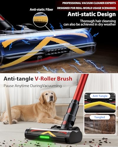Anti-Static & Anti-Tangle Brush – Sick of cleaning interruptions caused by hair tangles? Our exclusive brushroll is embedded with anti-static fibers that eliminate the static charge which makes hair cling. Say goodbye to interruptions—hair and pet fur are sucked directly in, not wrapped up, for an uninterrupted cleaning experience.