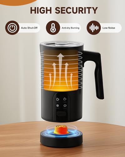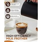 【Intelligent Safety & Energy-Saving Design】- Built-in auto shut-off function activates when milk boils or foam is ready, the milk steamer and frother for latte avoiding dry boiling risks. With 8-layer safety protection (anti-leakage, overheat guard), it’s certified for household use.