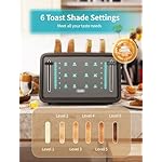 🍞【LED DISPLAYED TOUCH SCREEN】4 Slice Toaster comes with the LED display control panel. The digital displayed toaster built-in LED screen indicating toasting setting, making it easy to see the choice of shade setting.There is a light-bar near the lever that will illuminate, and parts of it will extinguish as the toasting gets closer to completion.Convenient to know the process of toasting.