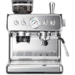 Kismile Espresso Machine with Grinder, 20 Bar Automatic Espresso Maker with Milk Frother Steam Wand, Removable Water Tank for Latte & Cappuccino, Professional Coffee Machine for Home