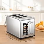 Mecity 2 Slice Toaster Touch Screen 1.5″ Wide Slot, Stainless Steel Smart Bread Toaster for Bagel Muffin Waffle Gluten Free Breads, Timer, Defrost, Reheat, 120V 825W