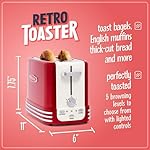 Nostalgia Retro Wide 2-Slice Toaster, Vintage Design With Crumb Tray, Cord Storage & 5 Toasting Levels, Red