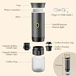 Portable Coffee Maker, Espresso Machine for camping, Travel Coffee Maker with USB-C, 3-in-1 Small Espresso Machine with Ground Coffee & Capsules (NS&DG) for RV, Hiking, Office(Grey)