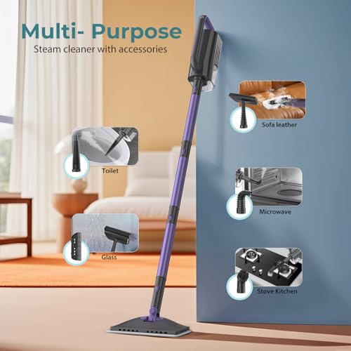 Specification: Steam Mop, Steam Cleaner with Large-Capacity Water Tank, 2 Washable Pads, 23FT Power Cable floor steamer, Detachable Steam Mops for Floor Cleaning (Purple)