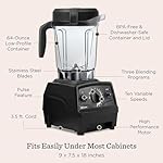 Included: Explorian with Programs Renewed Premium blender motor base, large 64-ounce container, and low-profile tamper; this low-profile kitchen blender container allows for large capacity blends while still fitting under kitchen cabinets